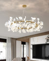 Verleihen Sie jedem Wohnraum mit dem runden WOMO Gingko-Kronleuchter zeitgenössische Eleganz. Mit seinen zarten weißen Keramik-Gingkoblättern ist dieser Kronleuchter die perfekte Ergänzung für Ihr Wohnzimmer, Schlafzimmer oder Esszimmer. Mit seinem eleganten, runden Design und wahlweise in Schwarz oder Gold wertet er Ihren Raum auf und schafft eine einzigartige Atmosphäre.