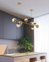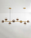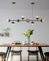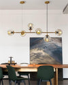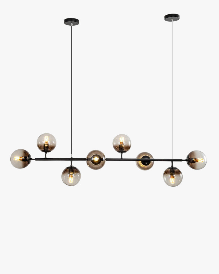Die Hängeleuchte ist eine luxuriöse Ergänzung und ein echter Blickfang, insbesondere für den minimalistischen Wohnstil. Ein schlanker Stab wird von sieben schicken Glasbirnen in verschiedene Richtungen festlich umrahmt. Das trendige Design erzeugt einen verspielten und eleganten Lichteffekt über einem Esstisch, einer Küchenbar oder einer Sitzecke. Darüber hinaus setzt diese Designer-Hängeleuchte auch im Schlafzimmer ein luxuriöses Detail und sorgt sofort für Wärme und Atmosphäre.