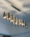 Dieser moderne Kronleuchter in Champagner vereint klassische, zeitgenössische Elemente und minimalistisches Design perfekt. Mit seiner klaren Struktur und den transparenten und rauchfarbenen facettierten Kristallen strahlt er helles, angenehmes Licht aus, das den Raum gleichmäßig und effizient beleuchtet. Kristalle und ein Rahmen aus Goldmessing verleihen dem Design einen Hauch von Eleganz und Glamour und machen ihn zu einem Blickfang in jedem Raum. Ideal für Räume mit hohen Decken, wie Wohnzimmer und Eingangshallen.
