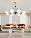Verleihen Sie Ihrem Wohn- oder Schlafzimmer mit dem WOMO Glaskugel-Kronleuchter einen Hauch von Mid-Century-Modernität! Mit seinem eleganten Gold- oder Chrom-Finish verleiht dieser Kronleuchter jedem Raum einen Hauch von Glamour. Seine Glaskugeln strahlen zudem ein warmes und einladendes Licht aus und schaffen so eine gemütliche Atmosphäre. Werten Sie Ihre Wohnkultur noch heute mit diesem atemberaubenden Stück auf!