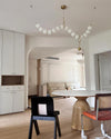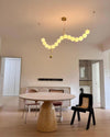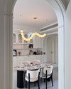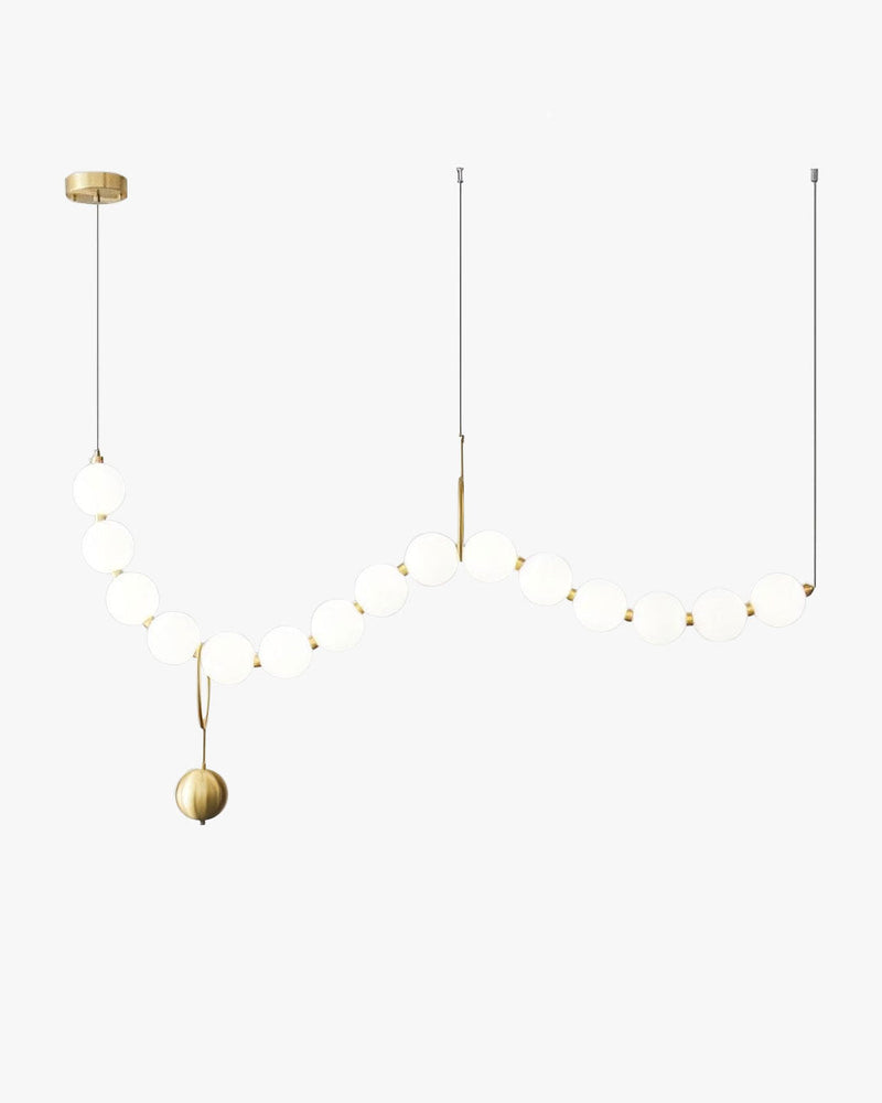 Verwandeln Sie Ihr Esszimmer mit dem WOMO Wave Pearl Kronleuchter in eine bezaubernde Oase. Aus elegantem Gold gefertigt und mit einer Reihe Acrylperlen verziert, verströmt dieses Statement-Stück Art-déco-Flair. Verleihen Sie Ihrem Raum einen Hauch von Luxus und Eleganz.