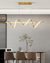 Verleihen Sie Ihrem Zuhause mit unserem WOMO Spiral-Linear-Kronleuchter einen Hauch zeitgenössischer Eleganz. Dieser atemberaubende Kronleuchter aus Edelstahl im Spiraldesign verleiht jedem Esszimmer oder jeder Küche einen Hauch von Gold und Raffinesse. Werten Sie Ihren Raum auf und beeindrucken Sie Ihre Gäste mit dieser einzigartigen und stilvollen Leuchte!