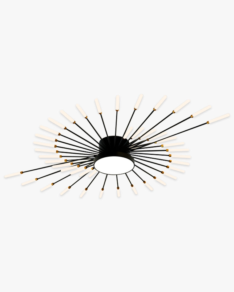 Erhellen Sie Ihr Schlafzimmer mit niedriger Decke mit der stilvollen WOMO Firework Starburst Deckenleuchte! Das Wirbel- oder Sonnendesign verleiht einen modernen Touch, während die schwarz-goldene Farbgebung Eleganz ausstrahlt. Werten Sie Ihren Raum auf und schaffen Sie mit dieser wunderschönen Leuchte eine warme, einladende Atmosphäre.