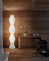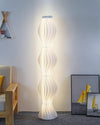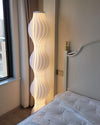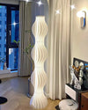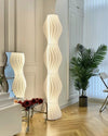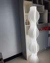Die Stehleuchte in Hula-Wellenform ist ein interessantes, dekoratives Stück. Die sanft geschwungenen Linien sorgen für warmes, diffuses Licht und erzeugen durch die plissierte und gewellte Silhouette natürliche Schatten. Dieses stimmungsvolle Licht verstärkt die Raumatmosphäre, indem es ein lebendiges Gefühl von Harmonie vermittelt. Ein modernes Stück, das in einer Umgebung, die nach einzigartigem Design sucht, nicht fehlen darf. Die enorme Materialstärke und Robustheit machen diese Stehleuchte zu einem idealen Begleiter für Wohnräume, die gemütliches, helles Licht und ein ausgeprägtes Gespür für Design erfordern. Die Stehleuchte eignet sich unter anderem für Ecken in Schlafzimmern, Wohnzimmern und Arbeitszimmern und lässt sich in eine Vielzahl von Designs integrieren.